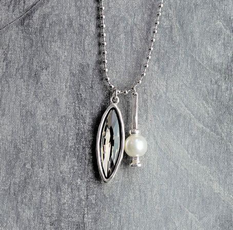 Collar cadena larga plateada bolas y adorno pieza grande color gris con perla vintage.
