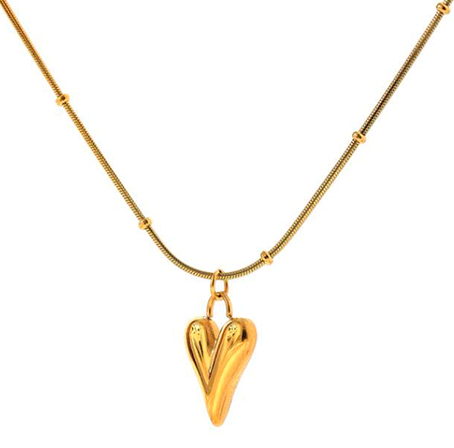 Collar gargantilla dorada con cadena de acero cola ratón fina y pieza en forma de corazón.