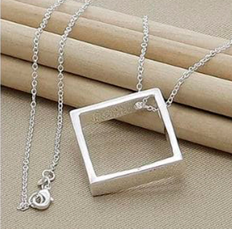 Collar plateado con micras de plata con colgante cuadrado liso minimalista.
