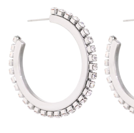 Pendientes Aros plateados en acero inoxidable con Circonita cúbica.