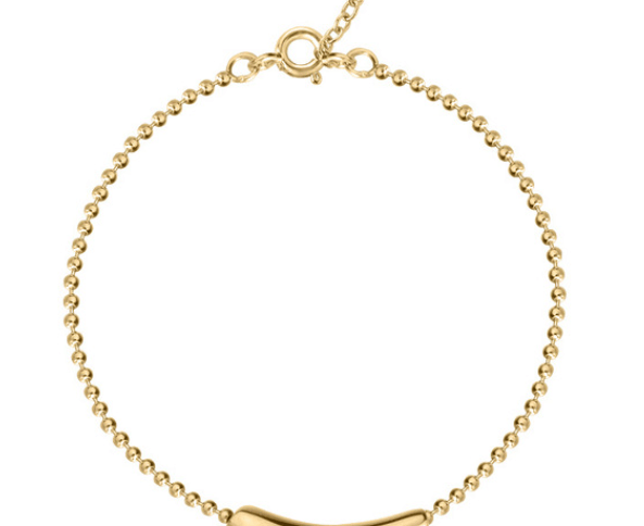 Pulsera acero con cadena redonda en color dorado con pieza geométrica alargada.
