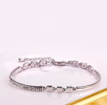 Pulsera semirrígida plateada lisa y con pequeños circonios en forma cúbica.
